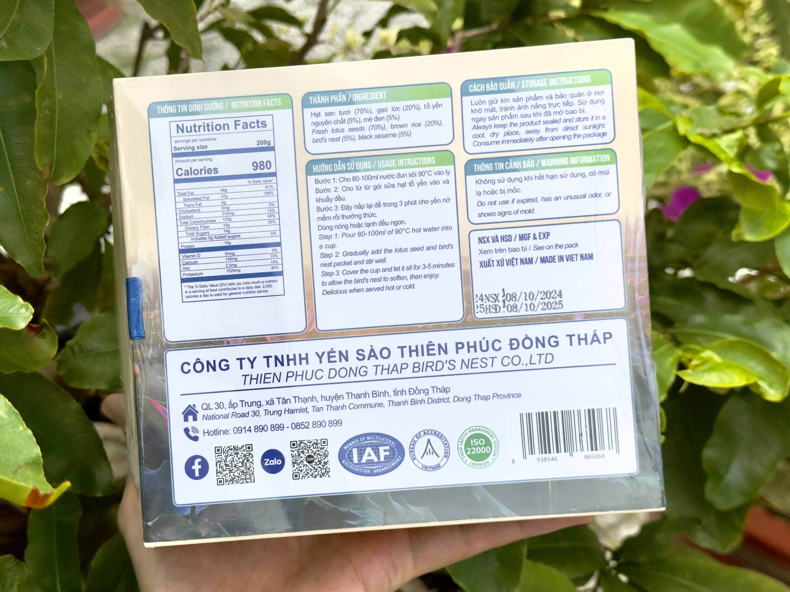 - Sản phẩm của: Công ty TNHH Yến sào Thiên Phúc Đồng Tháp