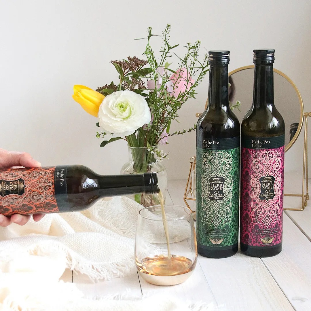 HERBZYME 113 GRAN PRO: Dung dịch Enzyme đậm đặc 98%. Sản phẩm là quá trình lên men tự nhiên được tiến hành bằng cách sử dụng 113 loại thực vật tươi có nguồn gốc từ Nhật Bản và men phức hợp tự nhiên ( enzyme, vi khuẩn axit lactic thực vật ) được lưu trữ trong “thùng gỗ cây tùng bách” trong nhiều năm.