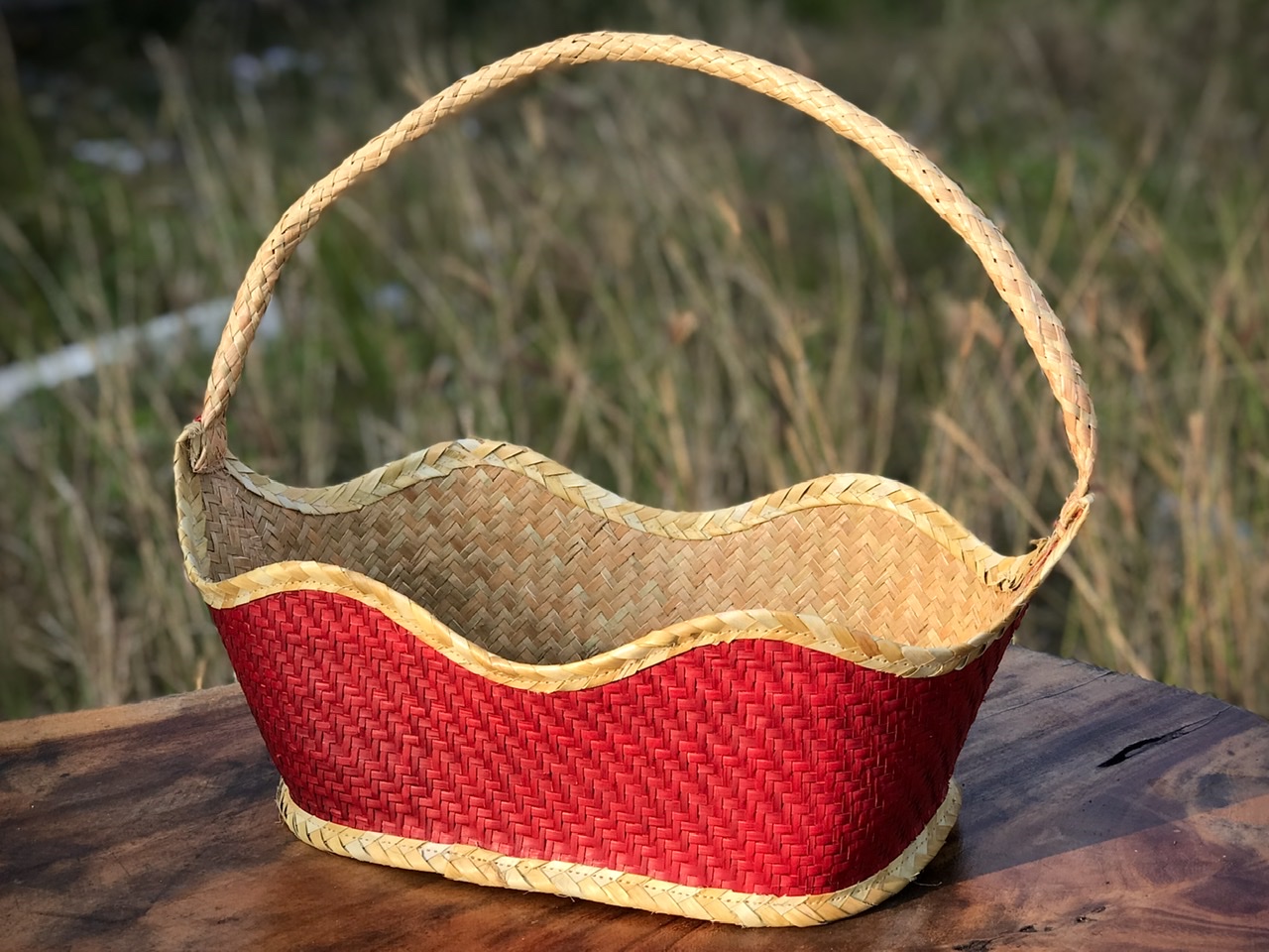 Giỏ quà làm từ bàng tự nhiên 100%, được đan thủ công bởi các nghệ nhân trong vùng. Giỏ có thiết kế độc đáo, giúp ta liên tưởng đến hình chiếc thuyền, giỏ có không gian rộng rải, có thể chứa được rất nhiều quà tặng.