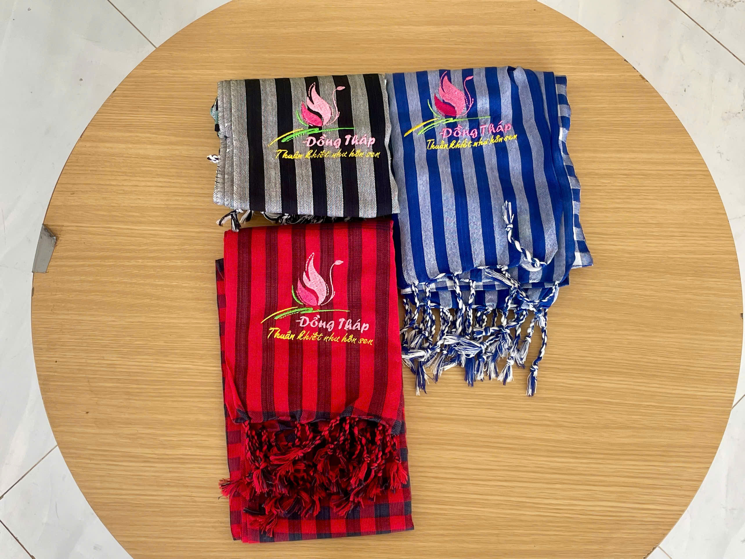 Khăn rằn là một sản phẩm dệt truyền thống nổi tiếng của vùng Đồng Tháp, đặc biệt là từ làng nghề dệt choàng Long Khánh. Với đặc trưng hoa văn độc đáo, khăn rằn không chỉ là vật dụng hàng ngày mà còn mang ý nghĩa văn hóa sâu sắc.