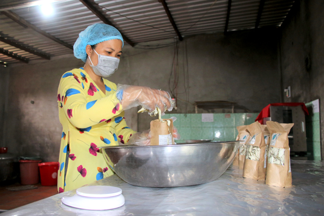 Chị Trần Thụy Hải Ly chế biến sản phẩm Snack vỏ bưởi sấy Phúc Đạt