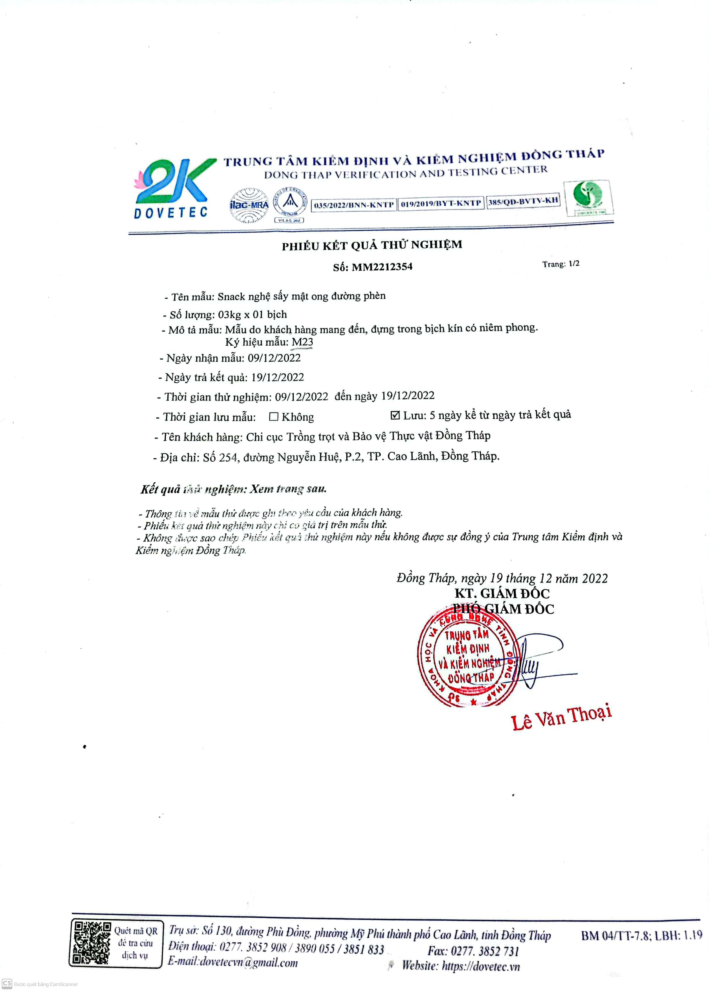 - Sản phẩm qua kiểm nghiệm đạt các chỉ tiêu về mặt chất lượng, an toàn thực phẩm, tự công bố sản phẩm (Theo Nghị định 15/2018/NĐ-CP ngày 02/02/2018 của Chính Phủ Quy định chi tiết một số điều về Luật an toàn thực phẩm).