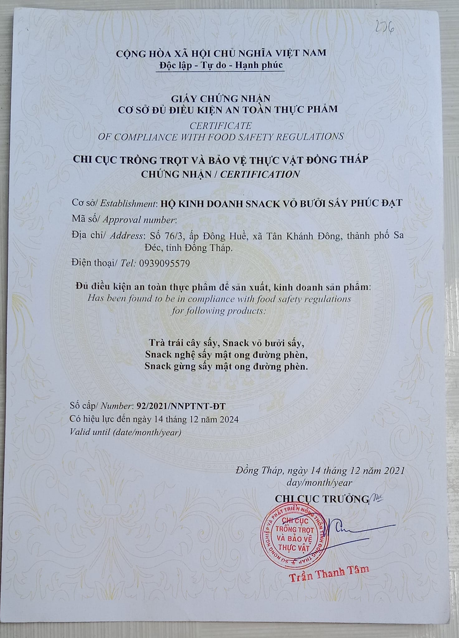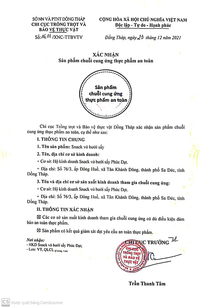 Hộ Kinh Doanh Snack Vỏ Bưởi Sấy Phúc Đạt chuyên sản xuất và mua bán