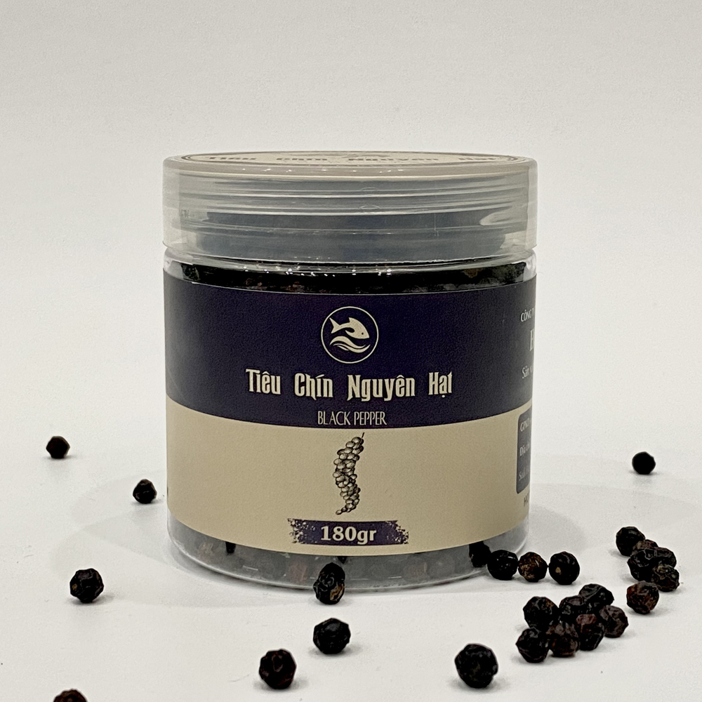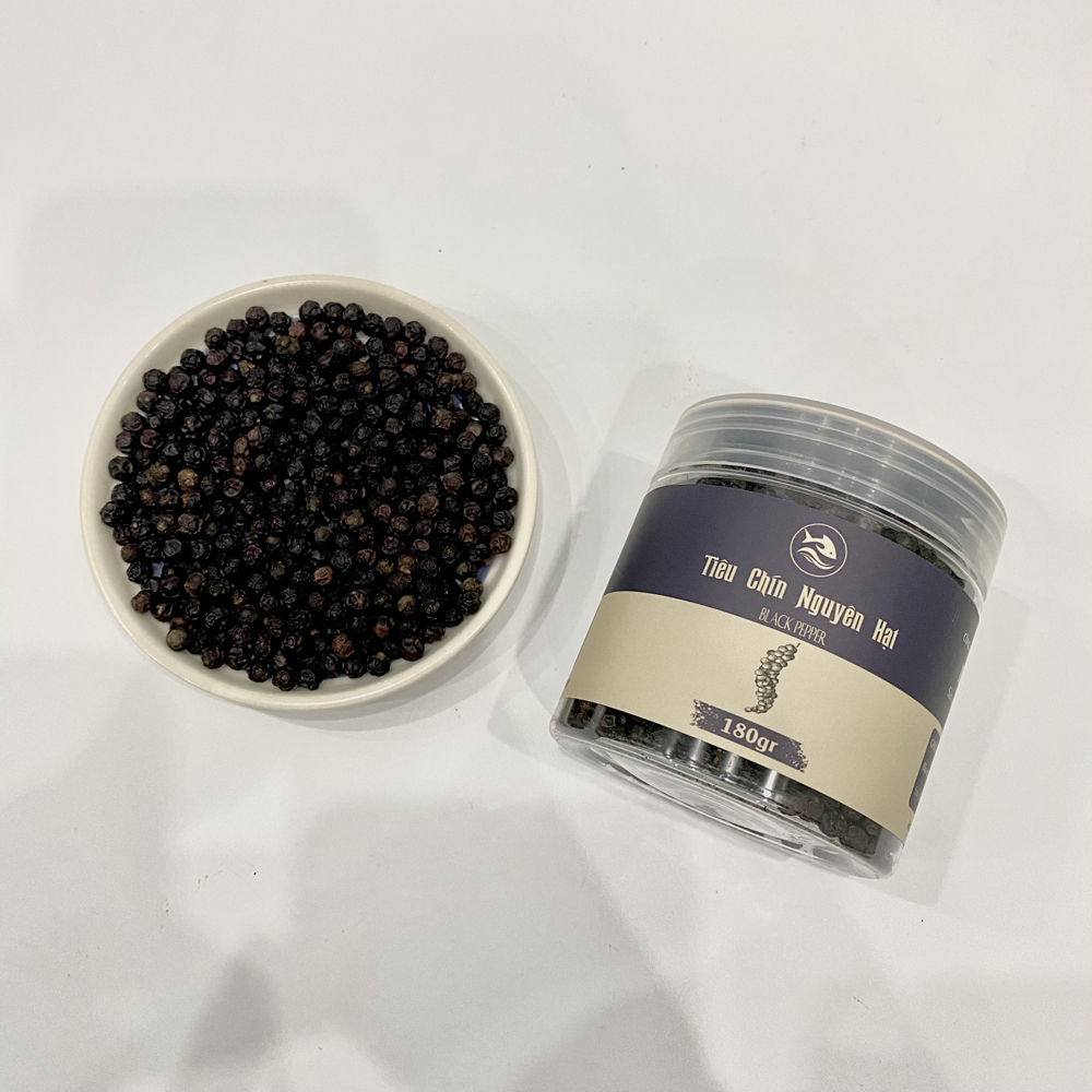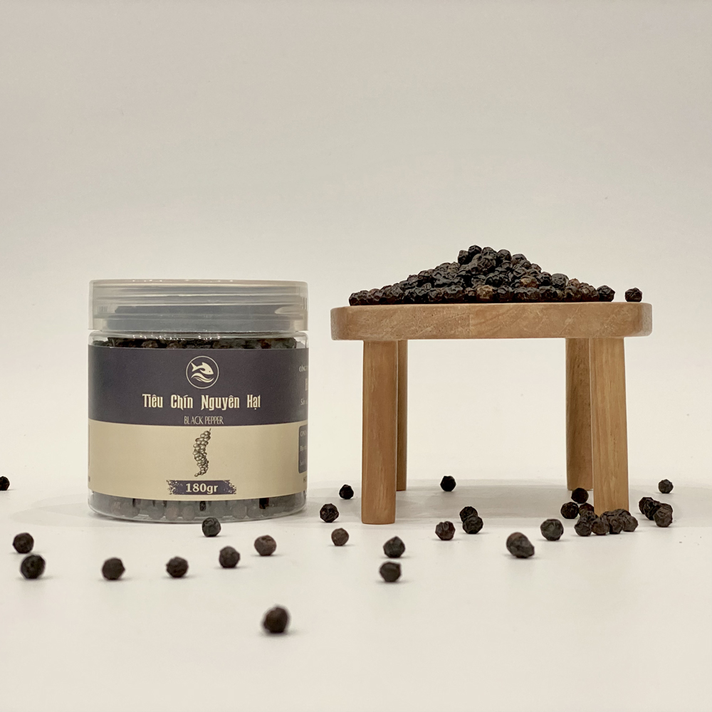 Tiêu chín nguyên hạt là kết quả của quá trình lựa chọn và thu hái cẩn thận sau đó được sấy khô tỉ mỉ trước khi được đóng gói giữ nguyên hạt Khi sử dụng loại tiêu này sẽ mang đến cho khách hàng một cảm giác cay nồng đậm đà và hương vị đầy tinh tế