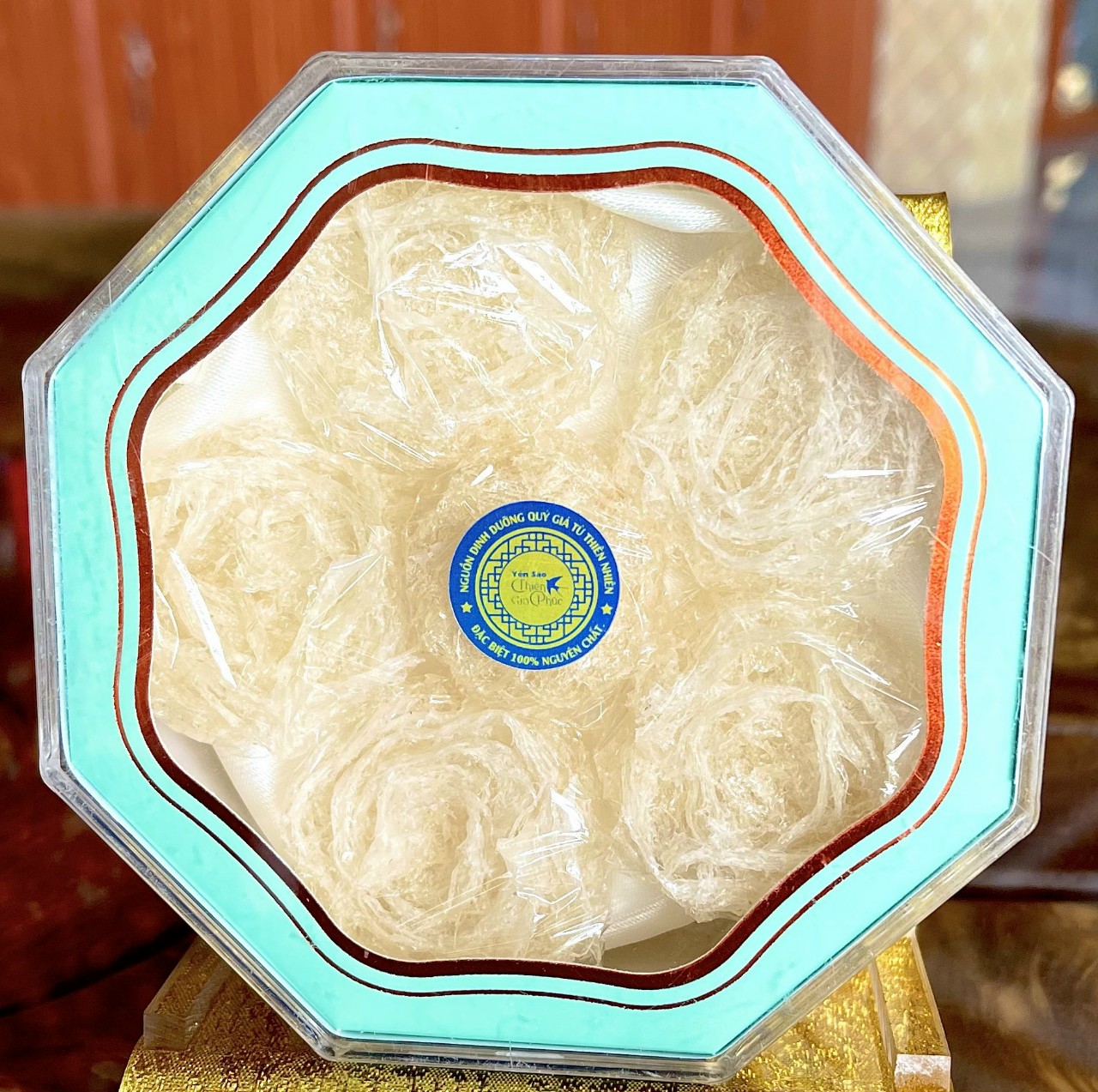 Tổ yến Nguyên tổ Thiên Gia Phúc là sản phẩm tổ yến chưa được sơ chế, có giá trị cao. Là món quà vô giá từ thiên nhiên vì những lợi ích đặc biệt của tổ yến nguyên tổ mang lại cho sức khỏe và làn da. Sản phẩm được thiết kế sang trọng, cao cấp, mang nhiều ý nghĩa, là sản phẩm chất lượng cao với Tổ Yến nguyên chất 100%.