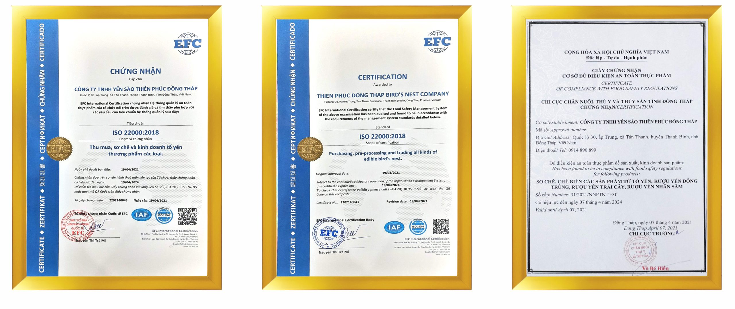 Hiện Công ty TNHH Thiên Phúc Đồng Tháp (Yến Sào Thiên Gia Phúc) đã là đơn vị sản xuất và phân phối các sản phẩm về yến lớn tại khu vực miền Tây với hơn 20.000 m2 nhà yến. Công ty cũng đã đầu tư xưởng sản xuất Yến tinh chế, nhặt lông theo phương pháp thủ công nhưng vẫn tuân thủ theo tiêu chuẩn quản lý an toàn thực phẩm để cho ra những dòng sản phẩm Yến tinh chế cao cấp.