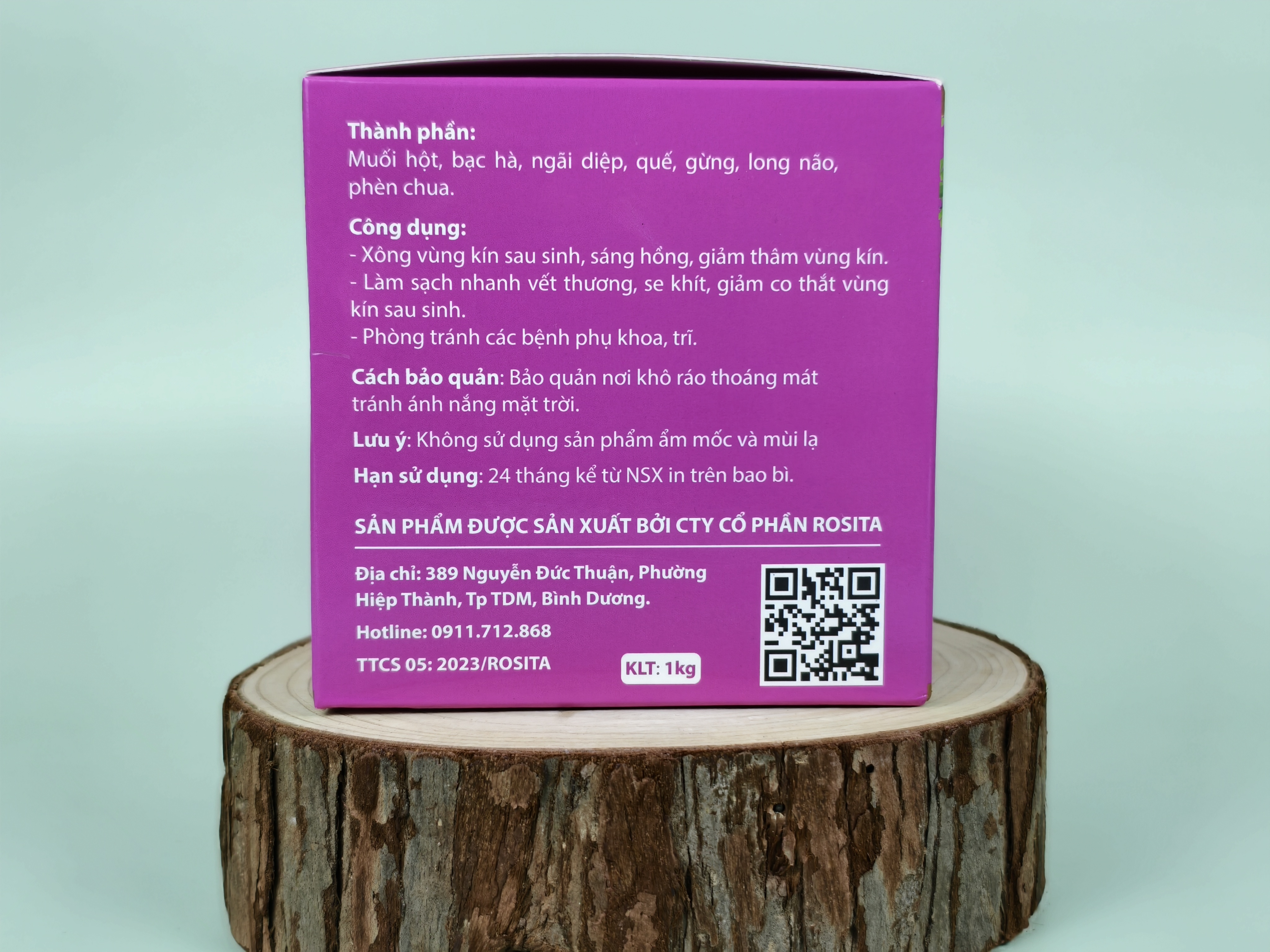 - Thành phần: Muối biển tinh khiết, lá trầu không, ngải cứu, hoàng bá, xuyên tâm liên, tinh dầu thảo mộc