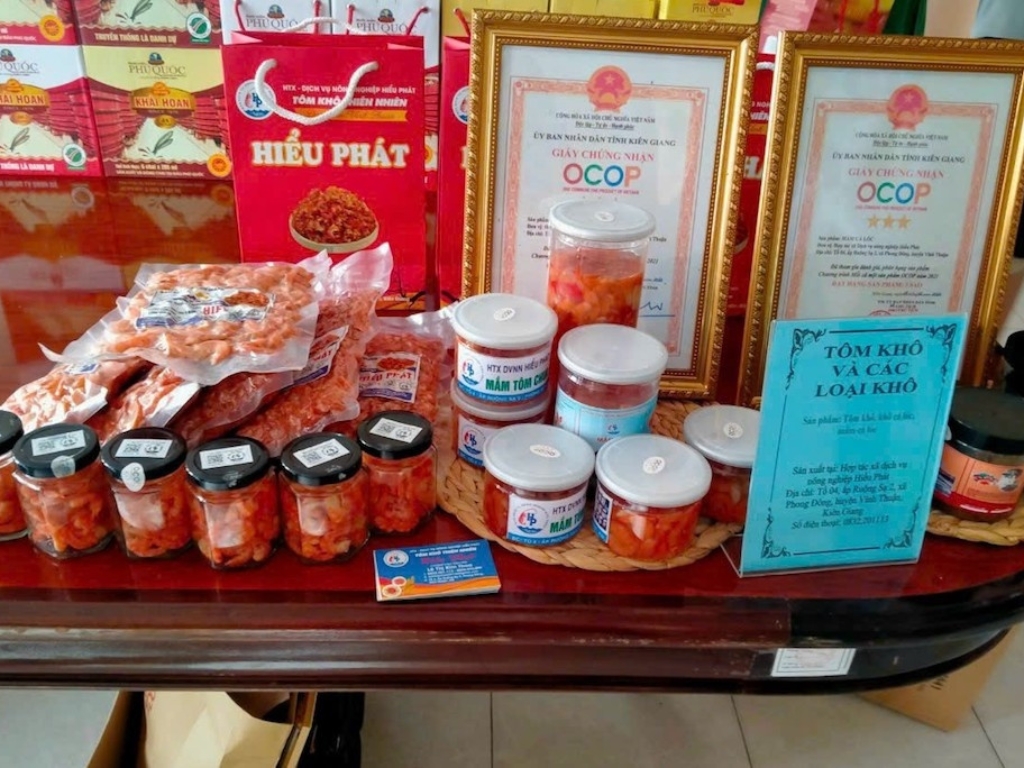 Tận dụng lợi thế vùng nguyên liệu dồi dào, HTX đã xây dựng chuỗi chế biến khép kín từ tôm tươi, cho ra đời nhiều sản phẩm đặc sản đạt chứng nhận sản phẩm OCOP như: