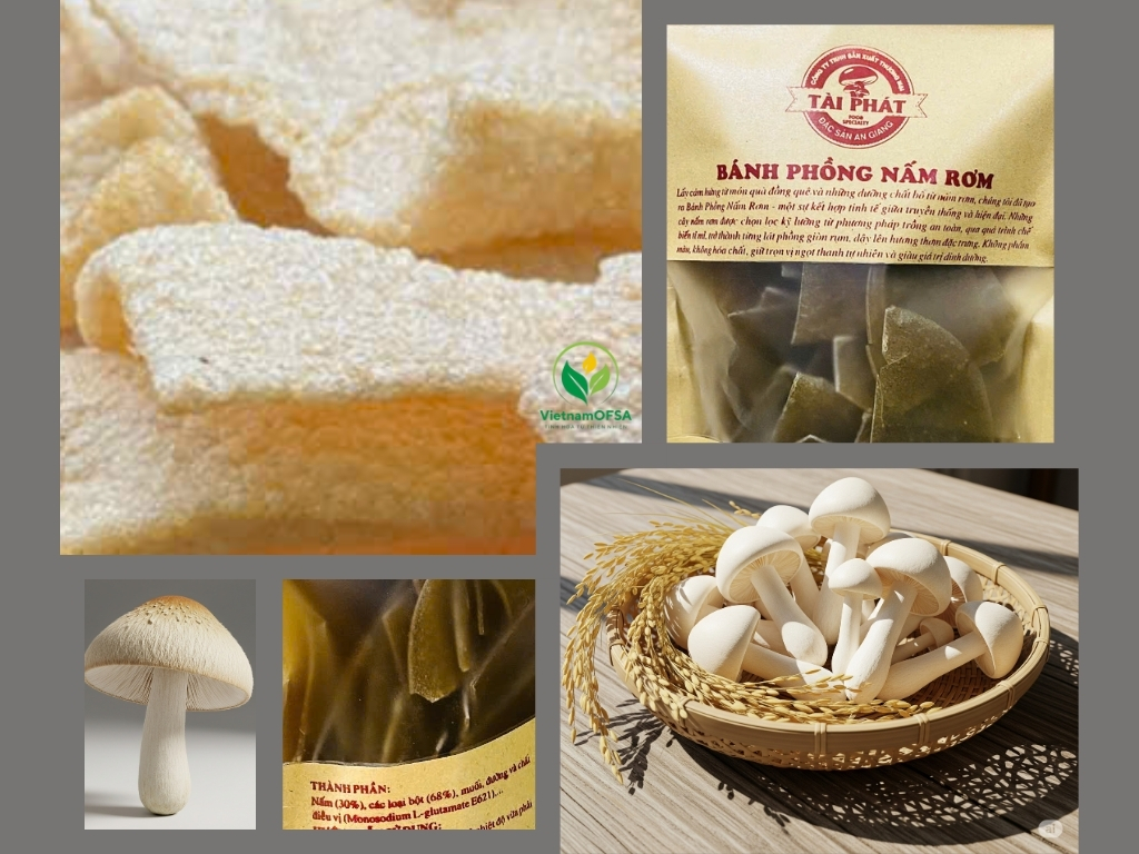 Lấy cảm hứng từ món quà quê mộc mạc và những dưỡng chất quý giá từ nấm rơm, Tài Phát giới thiệu Bánh Phồng Nấm Rơm 100g – sự hòa quyện tinh tế giữa giá trị truyền thống và công nghệ chế biến hiện đại.