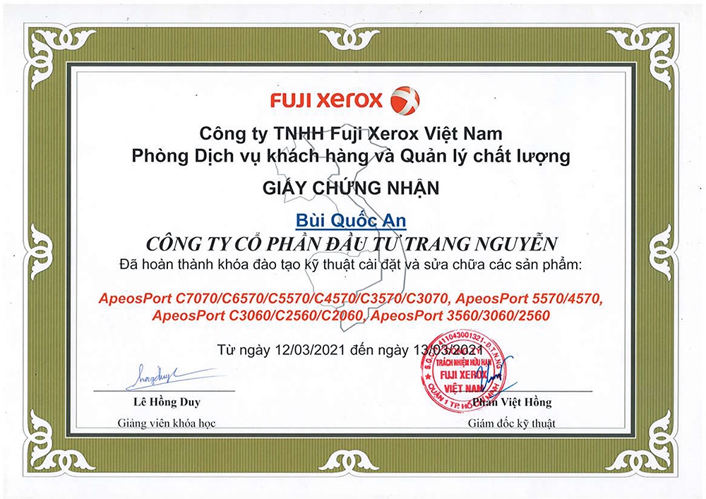 “Phát triển TRANG NGUYỄN trở thành doanh nghiệp chuyên nghiệp hàng đầu tại Đồng bằng sông cửu long về tư vấn và cung cấp các gói giải pháp máy văn phòng”.