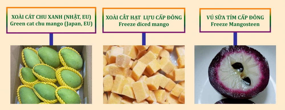 - Vùng trồng trái Vú Sữa Bơ Hồng, Cát Hòa Lộc, Xoài Tượng có đủ mã code xuất khẩu.