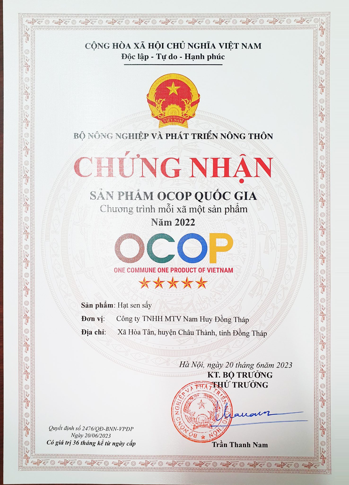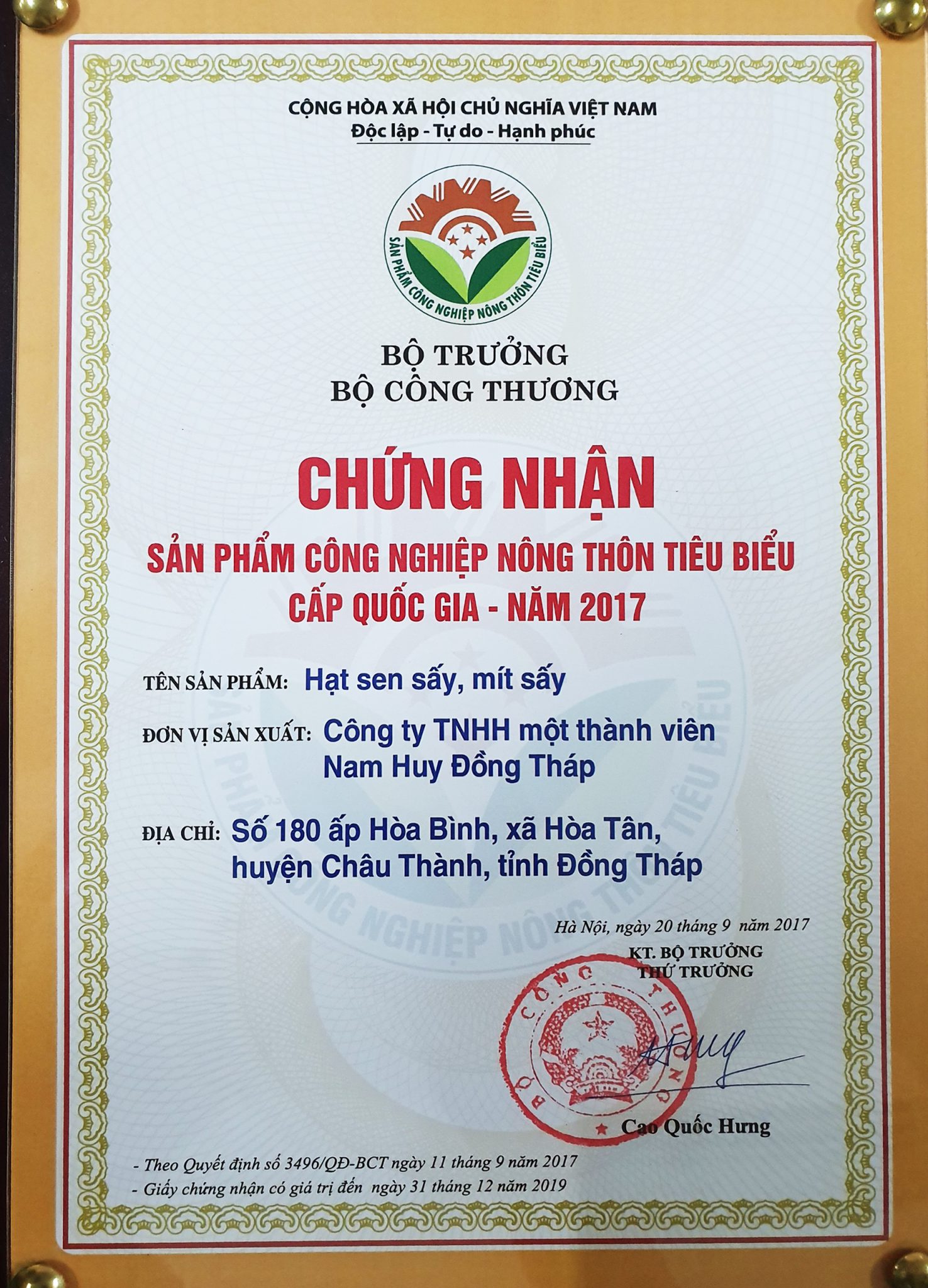 Công ty TNHH MTV Nam Huy Đồng Tháp (Công ty Nam Huy) có tiền thân là cơ sở chuyên phân phối các mặt hàng nông sản tại địa phương như: sen, mít, chuối, khoai lang… do ông Huỳnh Văn Hiệp sáng lập.