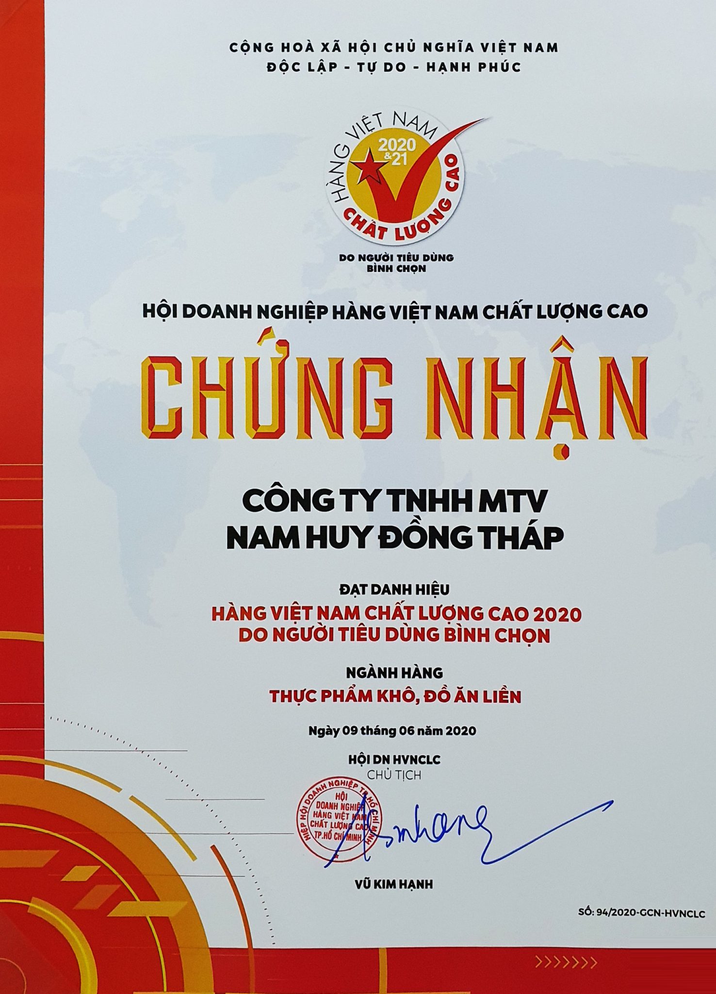 Bên cạnh đó, một yếu tố then chốt quyết định đến lòng tin của người dùng đối với công ty chính là vệ sinh an toàn thực phẩm. Công ty luôn đặt mối quan tâm lớn đến sức khỏe và lợi ích của người tiêu dùng. Các sản phẩm trái cây sấy đến từ thương hiệu Nam Huy đều được chứng nhận theo tiêu chuẩn vệ sinh an toàn thực phẩm, sử dụng trái cây chín tươi, không dùng hóa chất trong quy trình sản xuất, mang đến sự yên tâm tuyệt đối cho khách hàng.