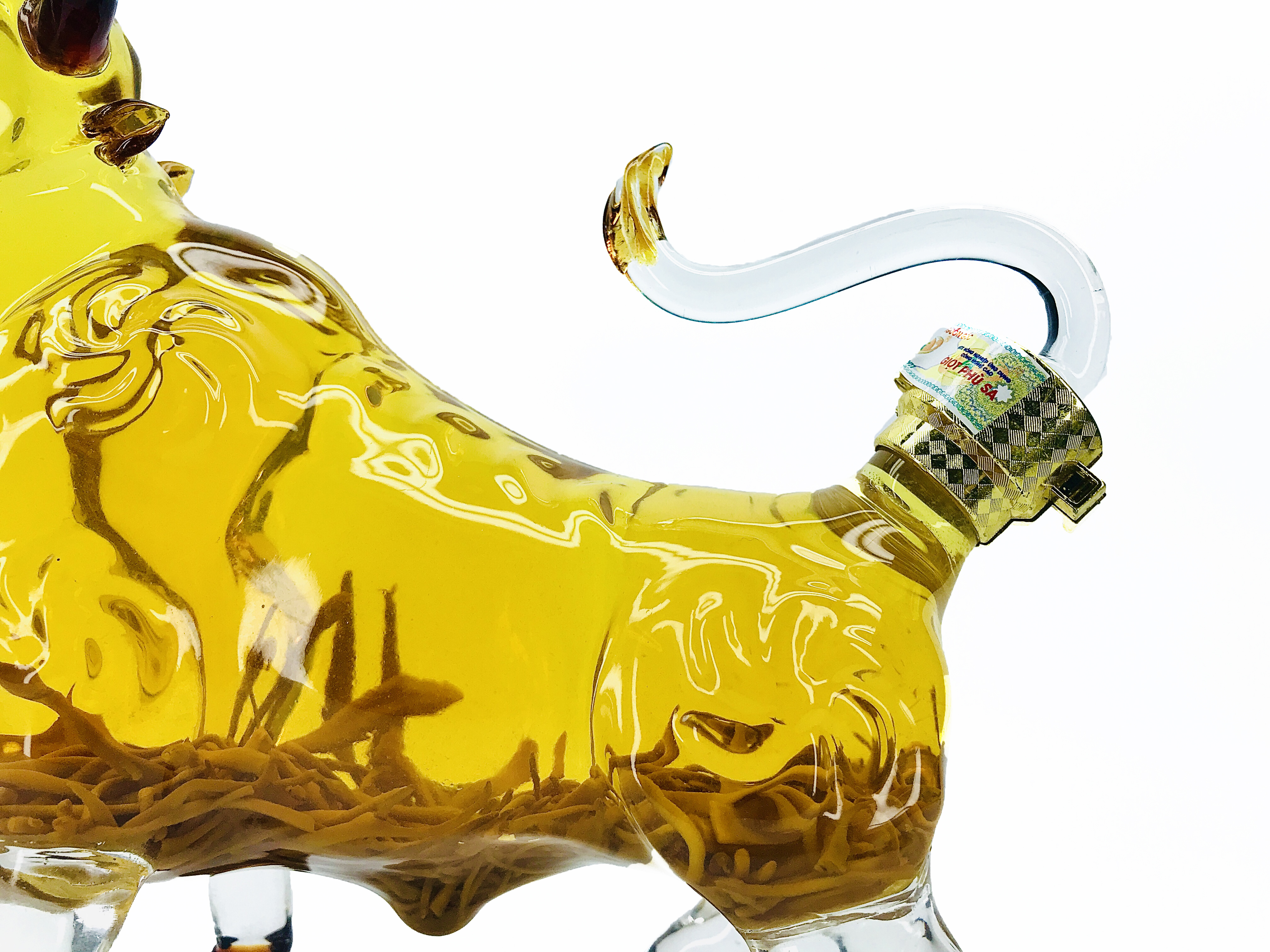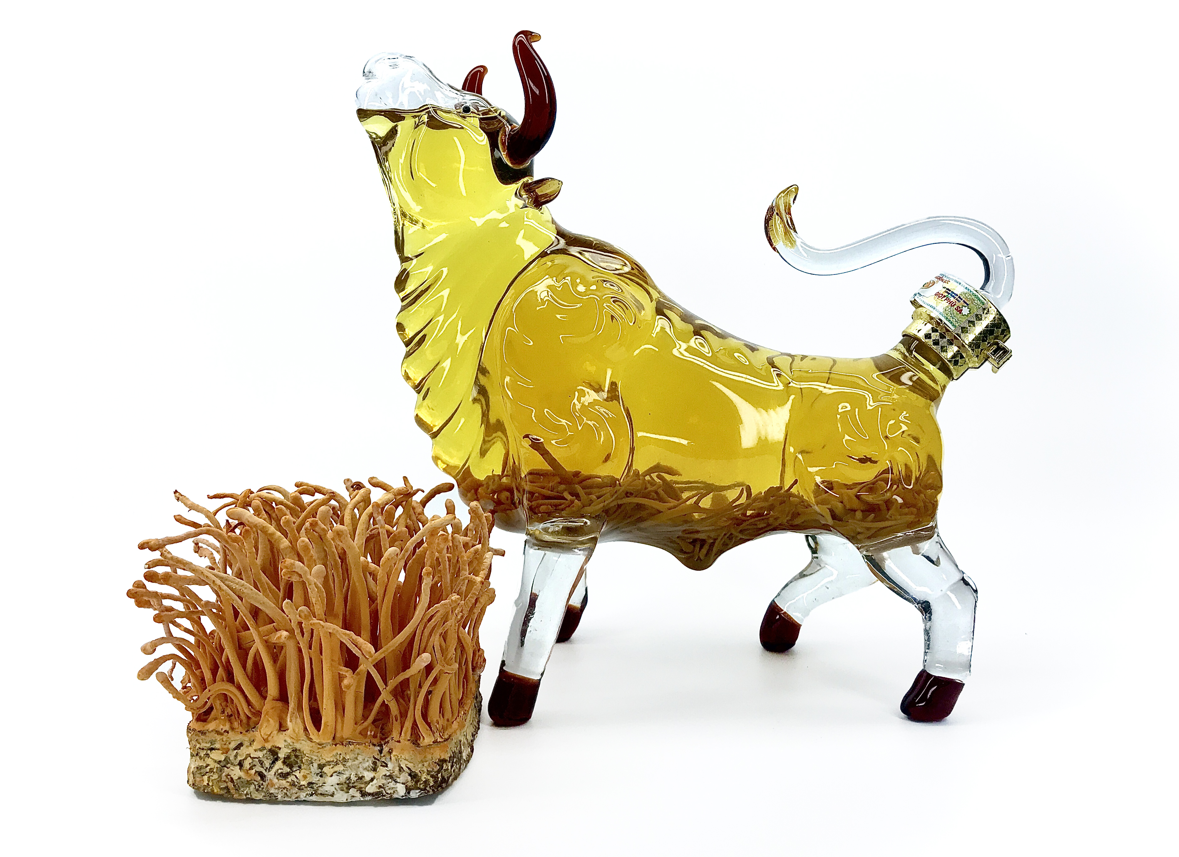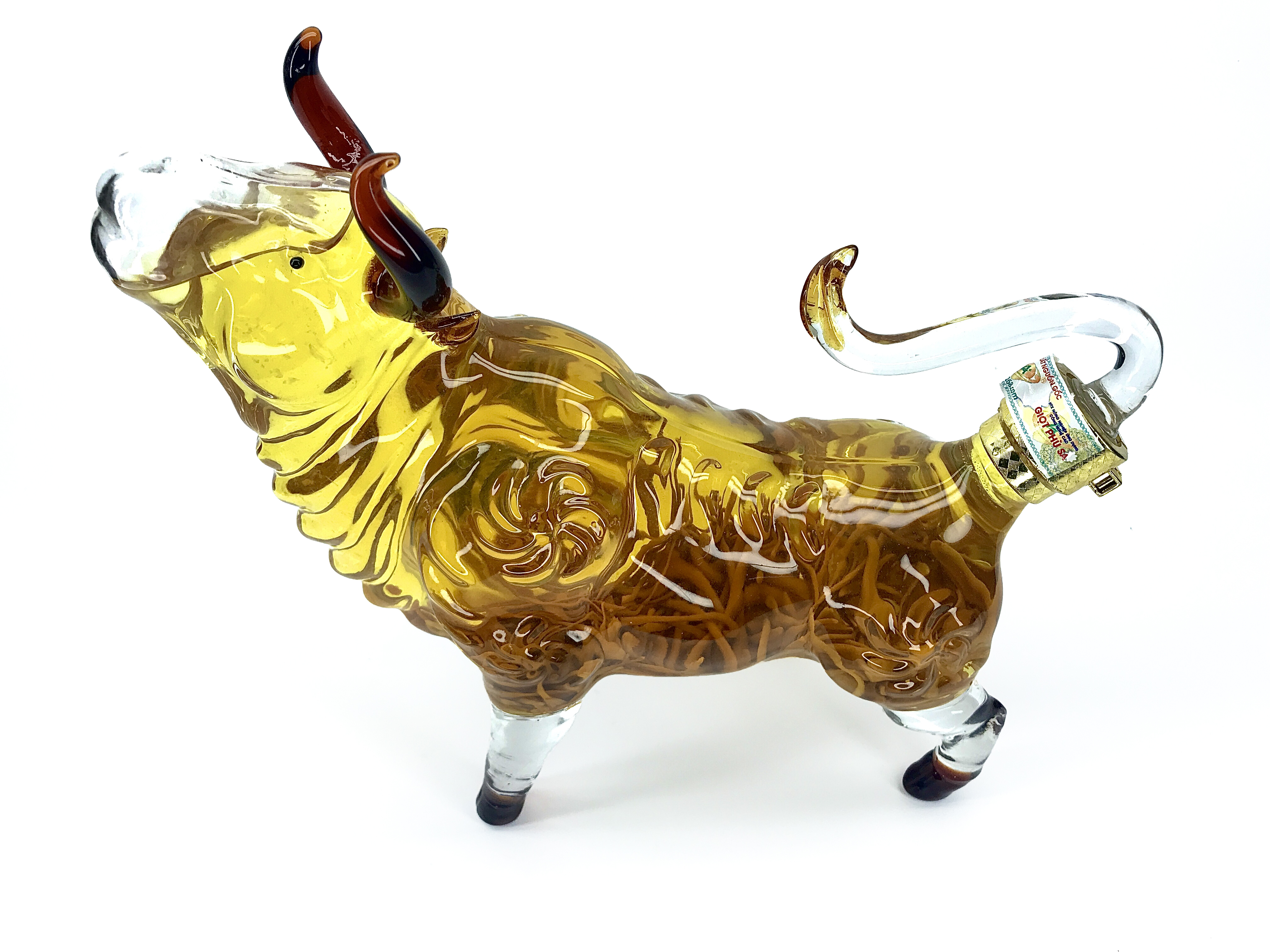 Rượu đông trùng hạ thảo mẫu trâu có hình trâu rất sang trọng, ngoài ra phong phong thủy trâu mang lại tài lộc và sức khỏe cho gia chủ, chưng vào tủ kính vừa thấy sang lại mang giá trị về mặt sức khỏe. Quá là tuyệt vời đúng không nào.