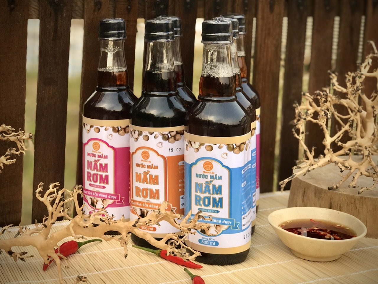 Nước mắm nấm rơm vốn được phát triển theo mong muốn khai thác hết tiềm năng từ món ăn quen thuộc của người Việt. Nhận thấy giá trị dinh dưỡng của cây nấm rơm mang lại cho người sử dụng rất cao nhưng lại chưa được khai thác tốt. Do đó, nước mắm nấm rơm đã ra đời, nước mắm được làm từ nước cốt nấm rơm, vốn được tuyển chọn kỹ nên hương vị của nước mắm rất thanh, không có vị hắc, màu sắc trong trẻo, không bị đục. Nước mắm có mùi hương đặc biệt, đến từ sự kết hợp của mùi hương thơm lừng của nấm rơm hòa quyện cùng mùi hương thơm ngọt của cá cơm, tạo nên một loại nước mắm độc đáo có một không hai. Đặc biệt, nước mắm nấm rơm hương cá cơm là sản phẩm mà cả người ăn chay và ăn mặn đều có thể sử dụng được, vô cùng tiện lợi.