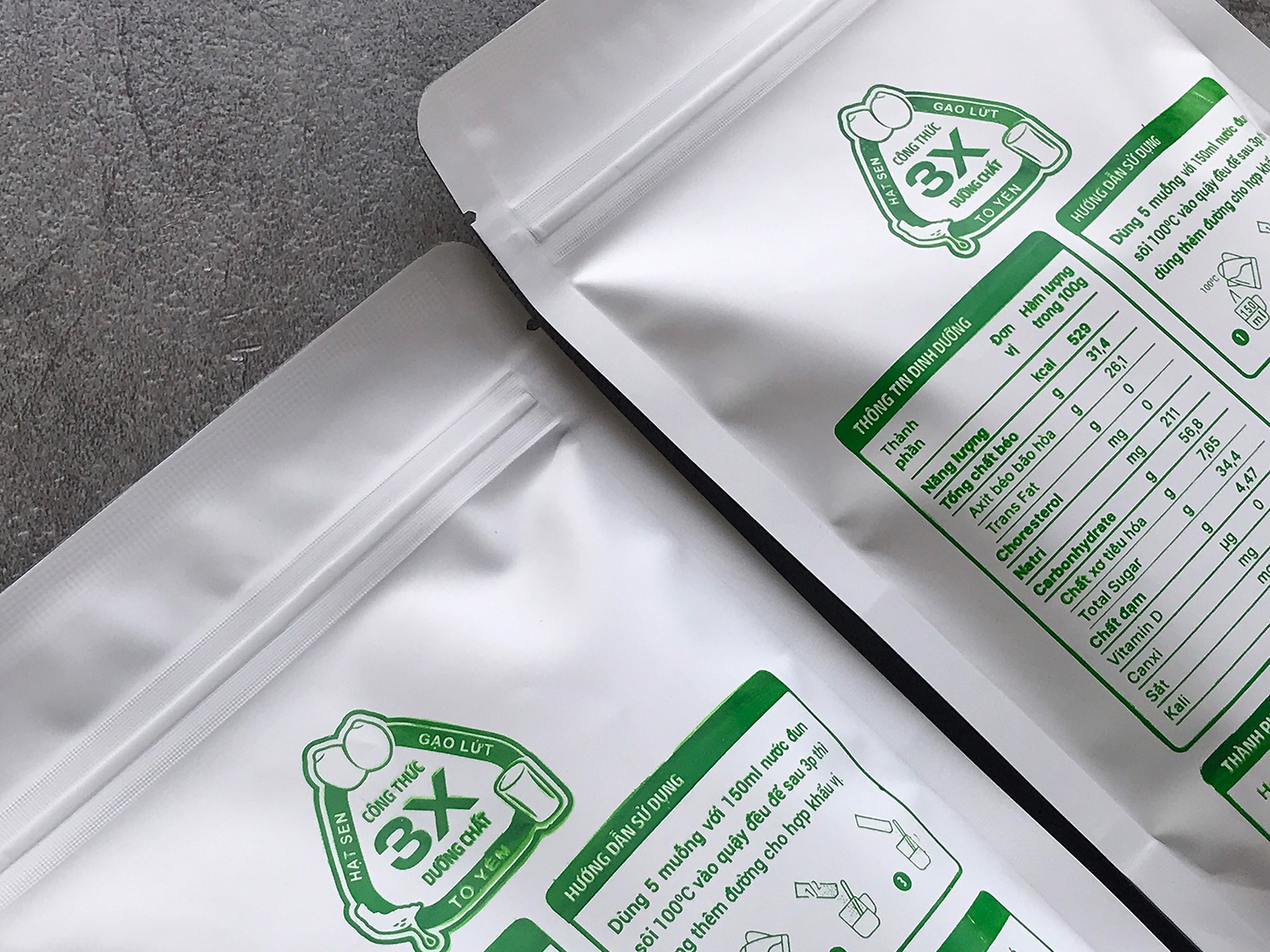- Thành phần: Hạt sen, gạo lứt, mè đen, tổ yến làm sạch