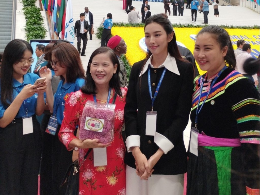 HTX giới thiệu sản phẩm Mỳ Thanh Long cùng với Hoa hậu thế giới Thùy Tiên tại trung tâm hội nghị Quốc gia, giới thiệu thương hiệu với bạn bè Quốc tế.