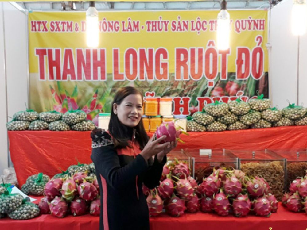 Chị Trần Thị Thúy, Giám đốc HTX cho biết, như nhiều hộ dân ở các xã Tân Lập, Nhạo Sơn của huyện Sông Lô, gia đình chị chuyển 6 sào đất đồi sang trồng thanh long ruột đỏ từ năm 2015. Nhờ chịu khó và tích cực áp dụng các tiến bộ khoa học kỹ thuật từ khâu trồng, tỉa nhánh, bón phân, chăm sóc thời kỳ ra hoa, đậu quả nên vườn thanh long đậu nhiều quả nhưng thị trường tiêu thụ khá bấp bênh. Hầu hết thanh long của gia đình và gần 30 hộ ở Tân Lập, Nhạo Sơn đều phải chở ra bán ở các chợ truyền thống hoặc xuất bán cho các lái buôn với giá bấp bênh...