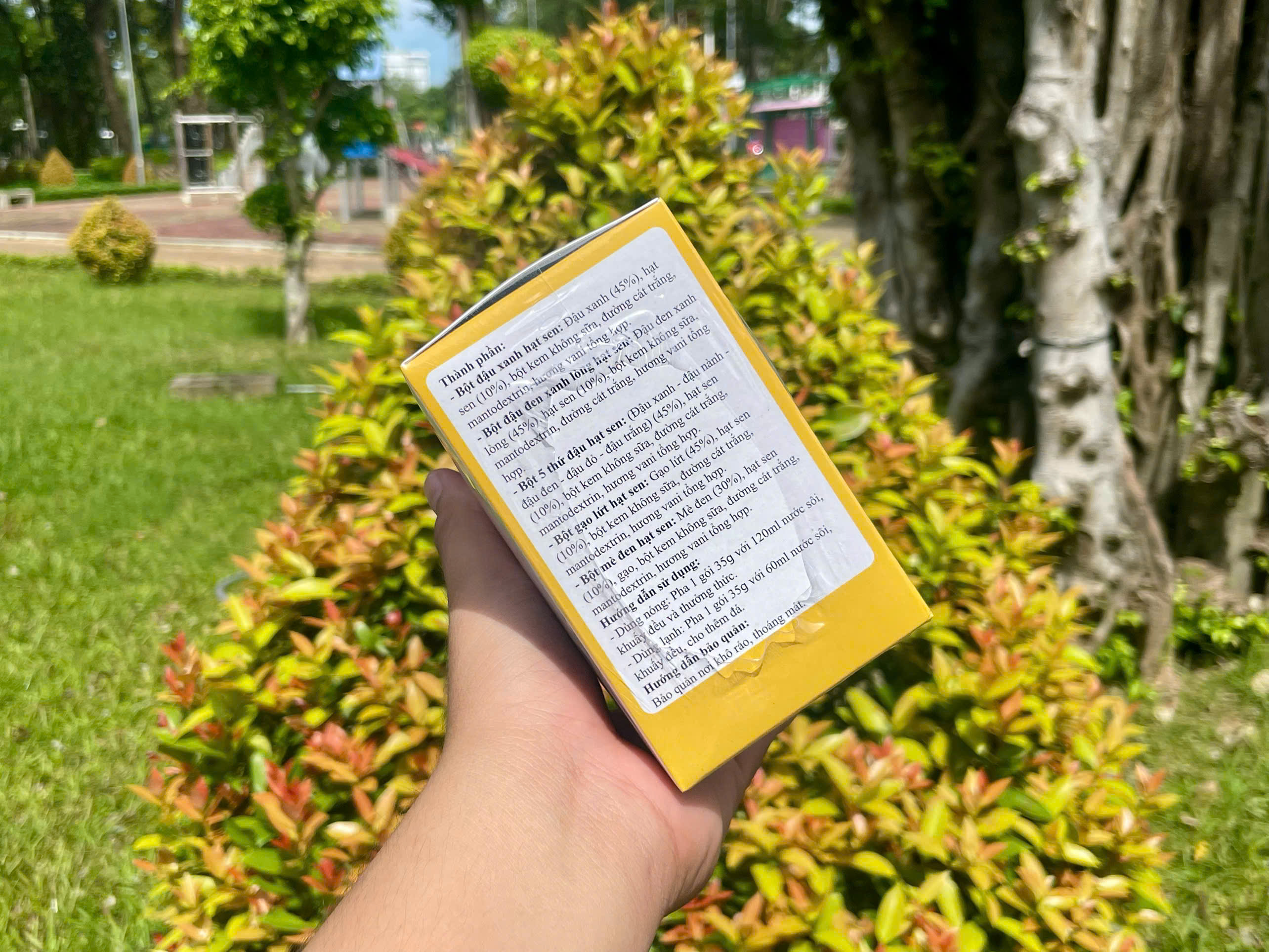 - Bột 5 thứ đậu đen: Gạo lứt, hạt sen,bột kem không sửa, mantodextrin, hương vani tổng hợp.
