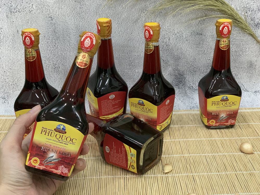 Nước Mắm Cốt Nhĩ Truyền Thống CDĐL Phú Quốc Huỳnh Khoa 40 độ đạm (Nguyên Chất) - Chai 200 ml - Hộp 6 Chai