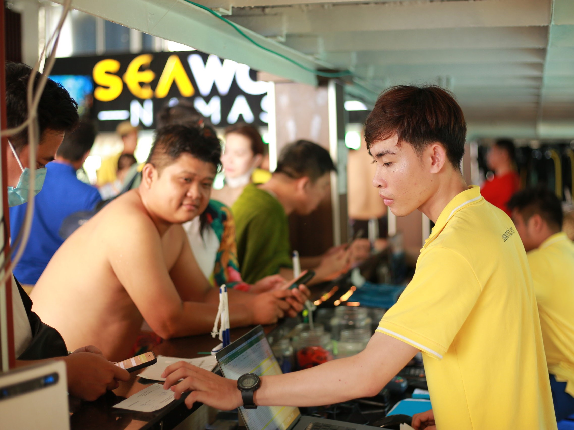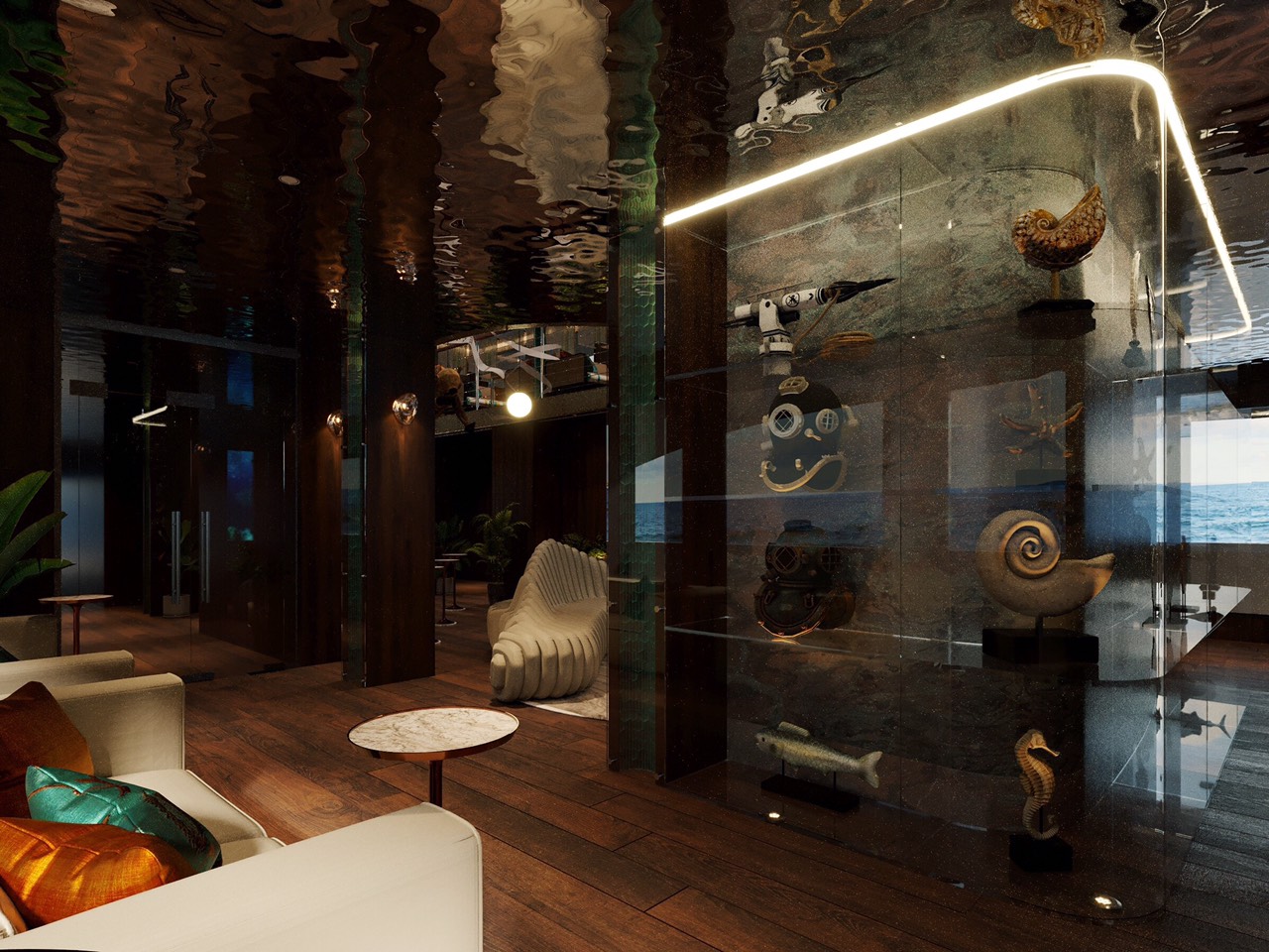- Tầng 1 thực hiện chức năng khu dịch vụ lặn biển, đi bộ dưới đáy biển (Seawalker) được rất nhiều du khách yêu thích. Du thuyền trang bị 42 thiết bị lặn với tổng số 60 huấn luyện viên phục vụ du khách.