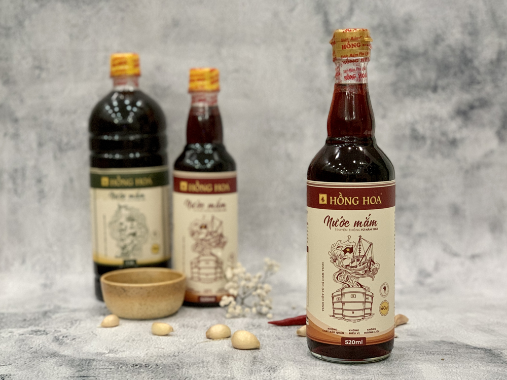 Nước Mắm Nhĩ Cá Cơm Truyền Thống Phú Quốc Hồng Hoa 40 Độ Đạm - Chai Thủy Tinh 520ml