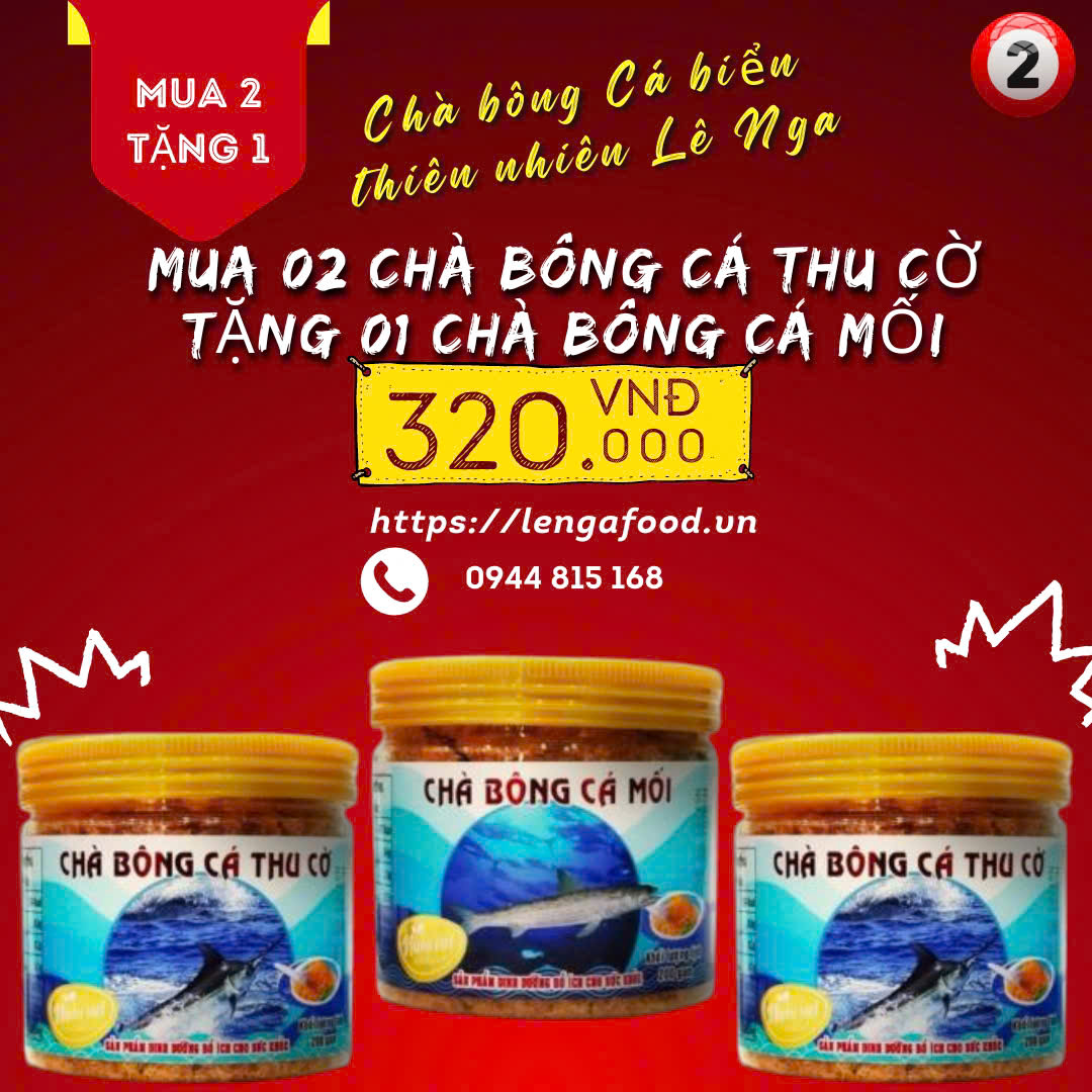 Nhân dịp chào ừng Lễ 2/9, Chà bông cá biển thiên nhiên Lê Nga xin tri ân đến quý khách hàng gần xa bằng chương trình khuyến mãi . Khi Quý khách hàng mua 02 hũ Chà bông Cá thu cờ 200gr được tặng 01 hũ Chà bông cá mối 200gr.