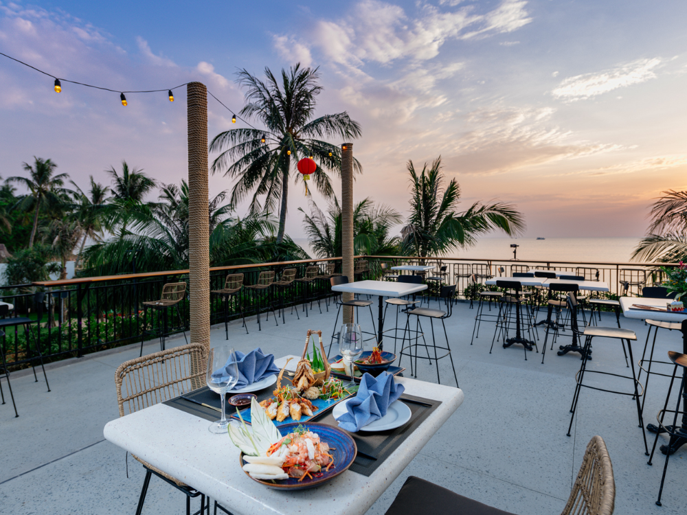 Sunset Beach Bar & Restaurant là quán bar bãi biển toạ lạc ngay trong khuôn viên của khu nghỉ dưỡng. Bao quanh quán là biển trời hùng vĩ, cảnh sắc thơ mộng. Vì vậy, Quý khách sẽ có cơ hội chiêm ngưỡng trọn vẹn vẻ đẹp của thiên nhiên đảo ngọc, đặc biệt là khung cảnh rực rỡ sắc màu mỗi khi hoàng hôn buông xuống ngay tại quán. Không chỉ phục vụ những ly cocktail tuyệt hảo cùng những món ăn đơn giản nhưng ngon miệng, Sunset Beach Bar & Restaurant còn mang đến cho Quý khách một không gian sôi động với các bản nhạc EDM thời thượng được trình diễn bởi dàn DJ hàng đầu tại Phú Quốc. Ngoài ra, Quý khách cũng sẽ được tận hưởng các phần trình diễn múa lửa "nóng bỏng'', đầy hấp dẫn, mê hoặc, hứa hẹn tạo nên những kỉ niệm vô cùng đáng nhớ cho chuyến hành trình ghé thăm đảo ngọc của mỗi du khách.