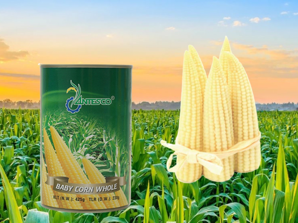 Bắp Non Đóng Hộp Antesco 425g - Đặc Sản An Giang – sản xuất theo công nghệ Châu Âu, tiện lợi, an toàn, giữ trọn hương vị tự nhiên, dùng ngay hoặc chế biến đa dạng món ăn.